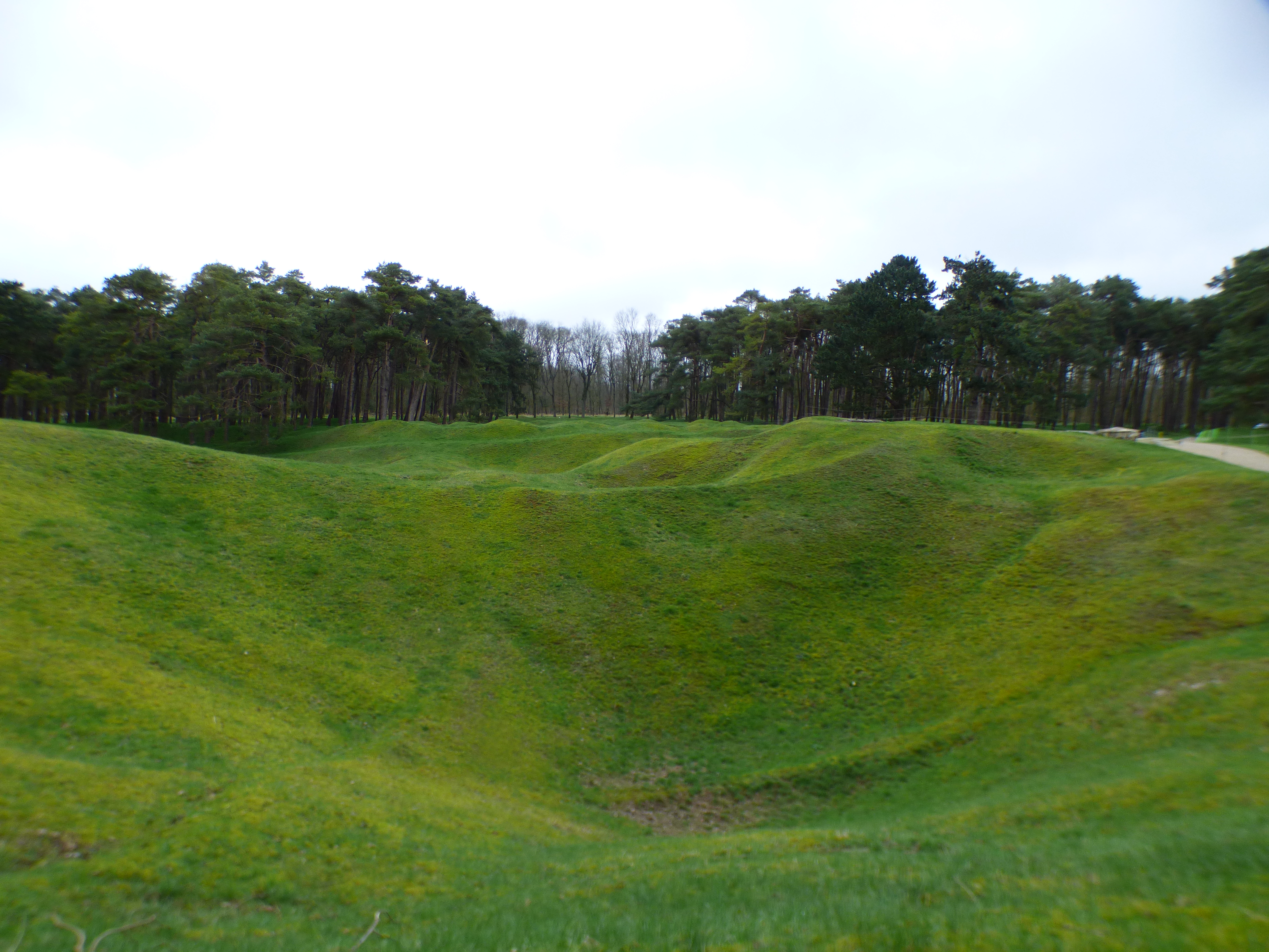 Monument et centre d’accueil et d’éducation s’inscrivent au coeur d’un paysage boisé dont toute une zone est interdite au public car encore non déminée. Des pins noirs d’Autriche furent plantés après le conflit, chaque arbre a été planté par un canadien et symbolise le sacrifice d’un soldat. L’état du sol, les trous d’obus attestent de la violence des combats sur cette crête reprise aux allemands par les soldats du corps canadien.. Près de ces trous de verdure, dans ces forêts paissent aujourd’hui des moutons qui pourraient rendre le paysage presque idyllique!
