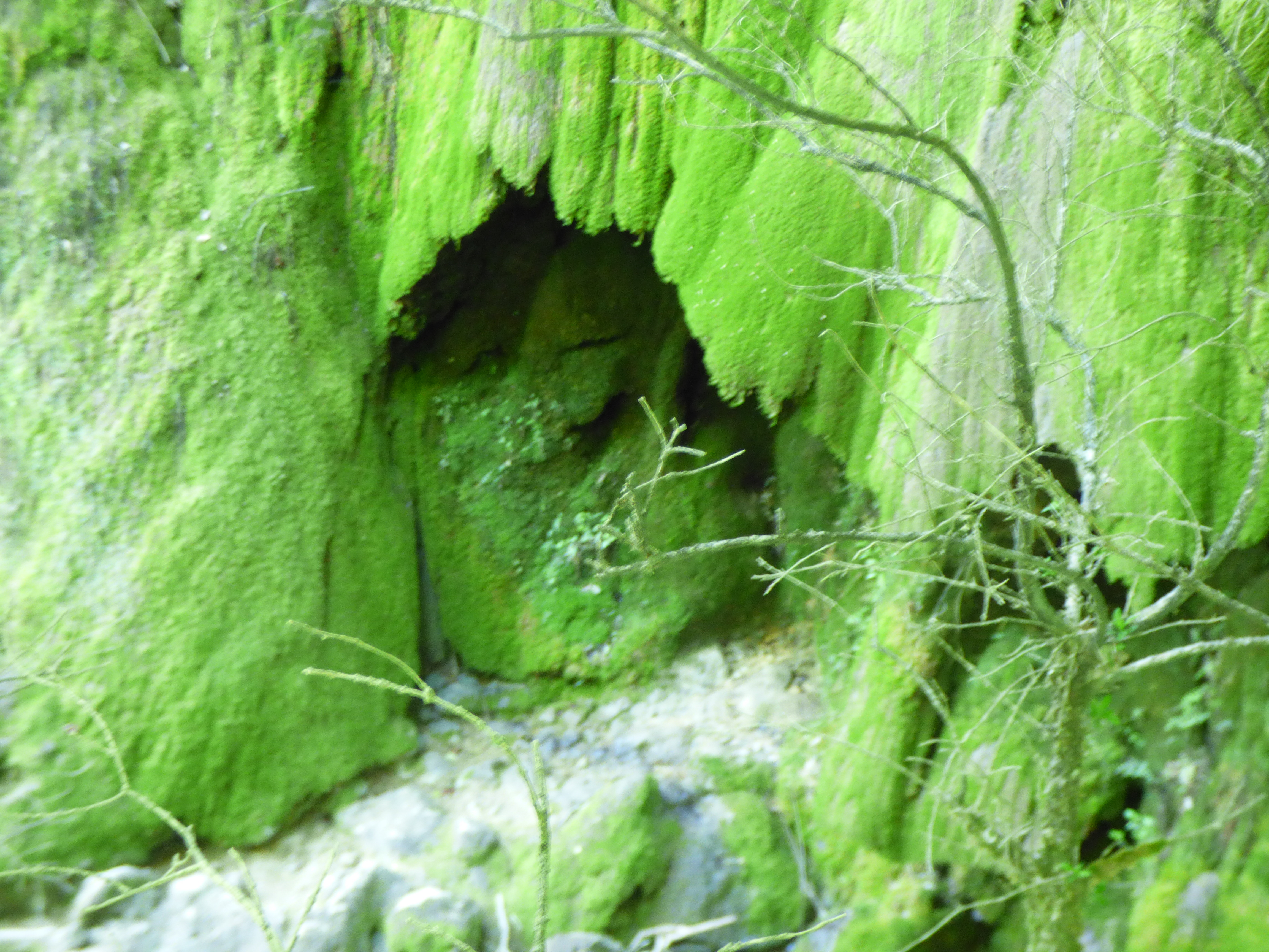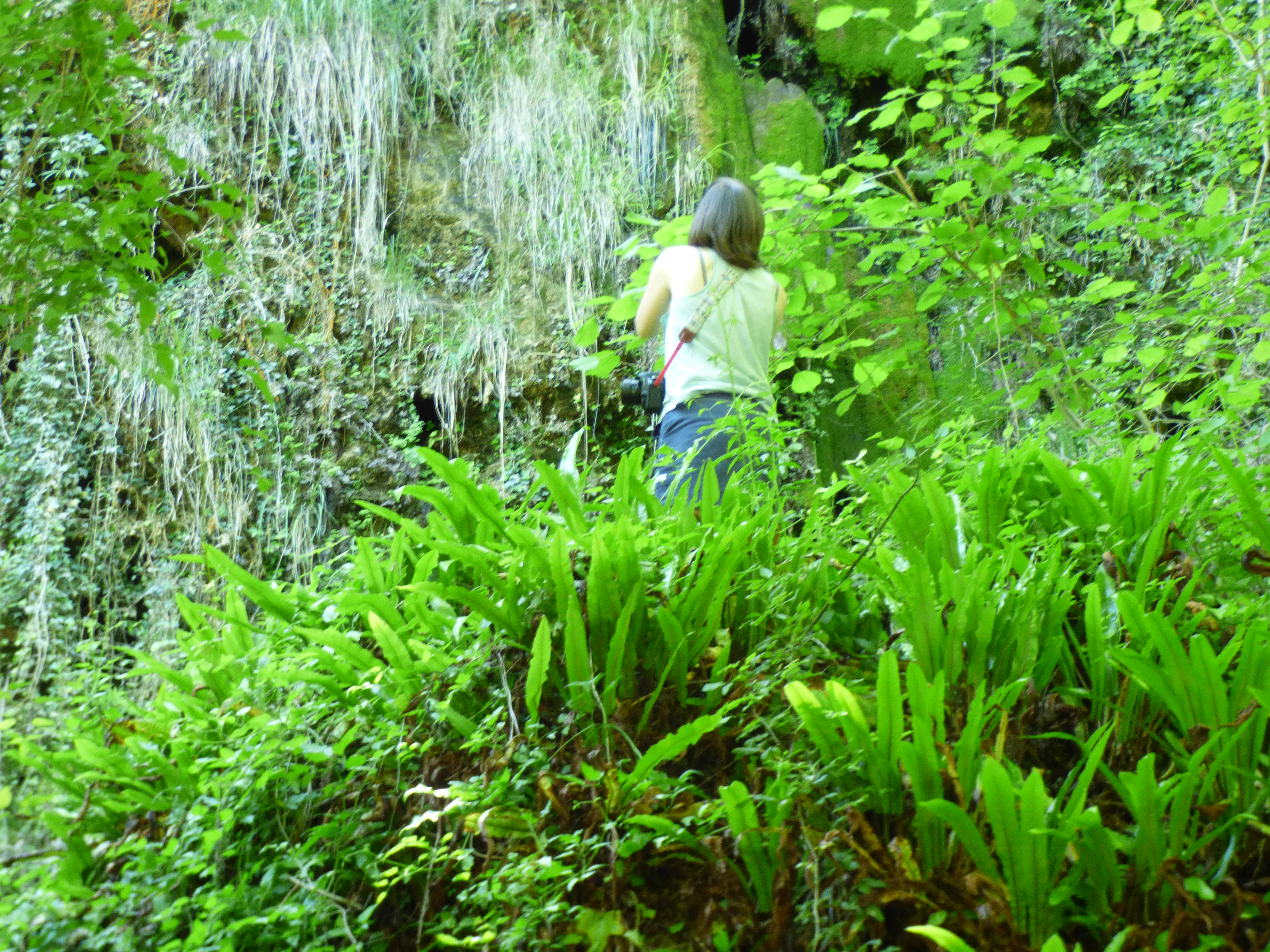 La présence de mousses, de fougères fait du lieu un endroit tout à fait insolite : végétation luxuriante, grottes… nous sommes ailleurs.
