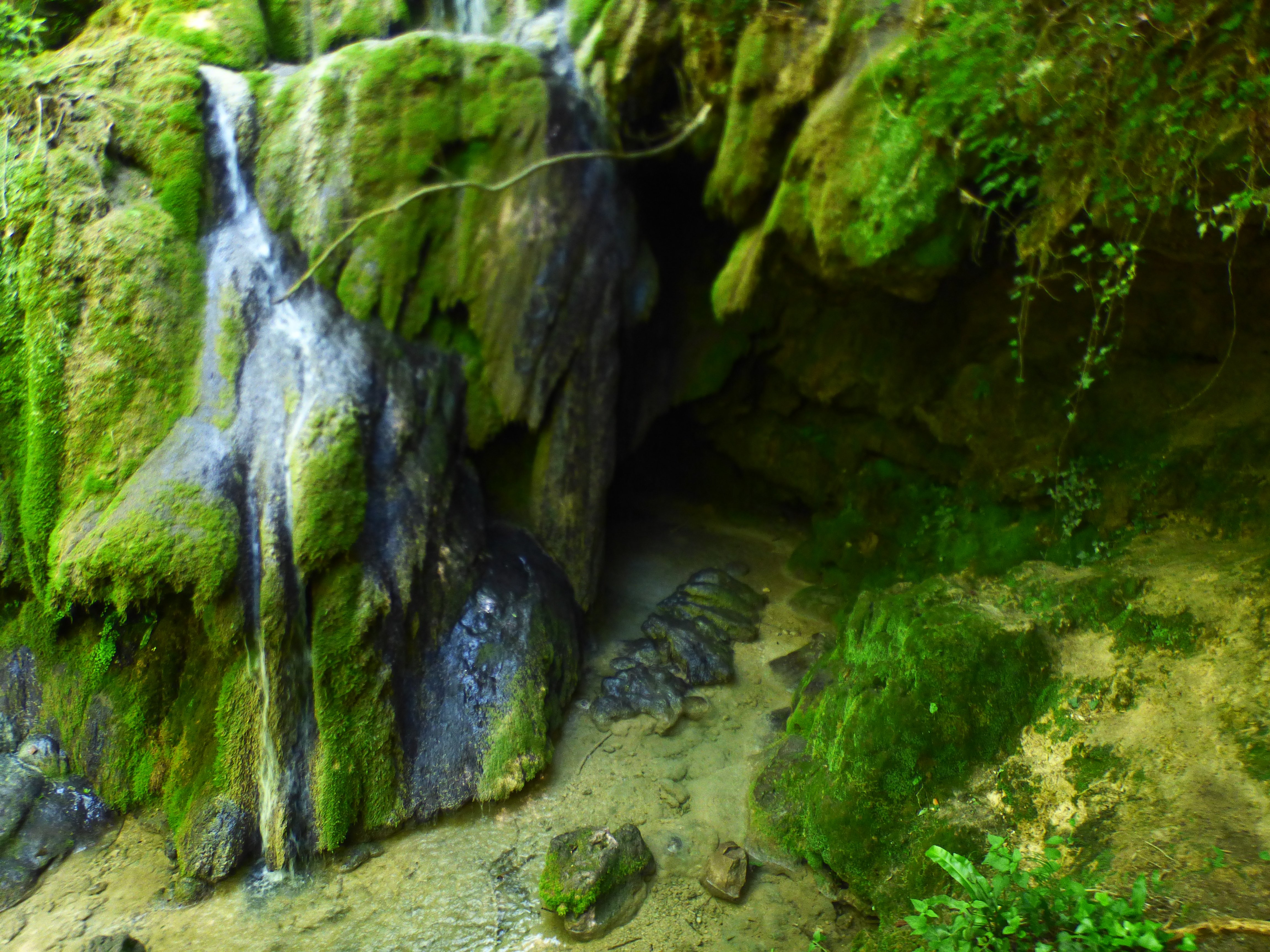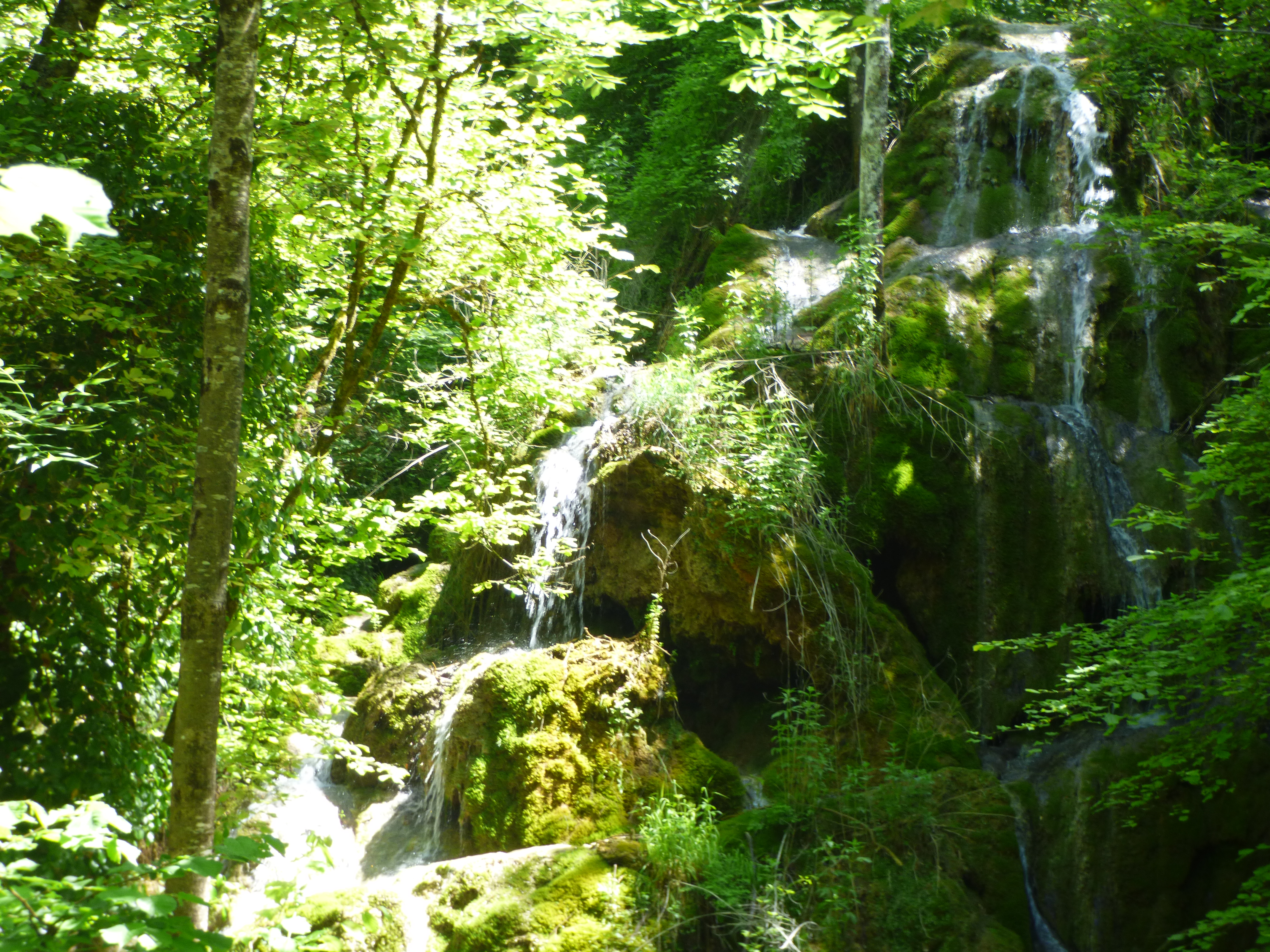 Mieux vaut venir à Roquefort les cascades au début du printemps. Nous y sommes venues fin mai et le lieu après quelques belles journées était un peu moins spectaculaire, les cascades ayant quelque peu perdu de leur vigueur. Par contre il ne faut pas s’attendre ici à être seul, puisque nous arrivons près du site en voiture. Mais la plus part des visiteurs restent au pied des cascades et ne continuent pas le chemin qui s’élève dans les bois. Or ce dernier permet de s’isoler un peu et de profiter de la fraîcheur procurée par la végétation luxuriante du site.