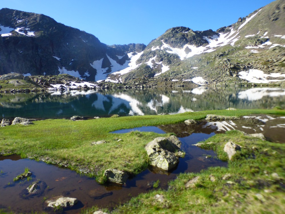 Après avoir observé la flore du site, les superbes couleurs de l’eau, retour au refuge pour un dernier café, encore quelques photos avant la descente dans la vallée. Après une montée dans la brume la veille, les paysages n’en étaient que plus beaux. Avant de quitter le site l’envie d’y revenir était déjà très forte!
