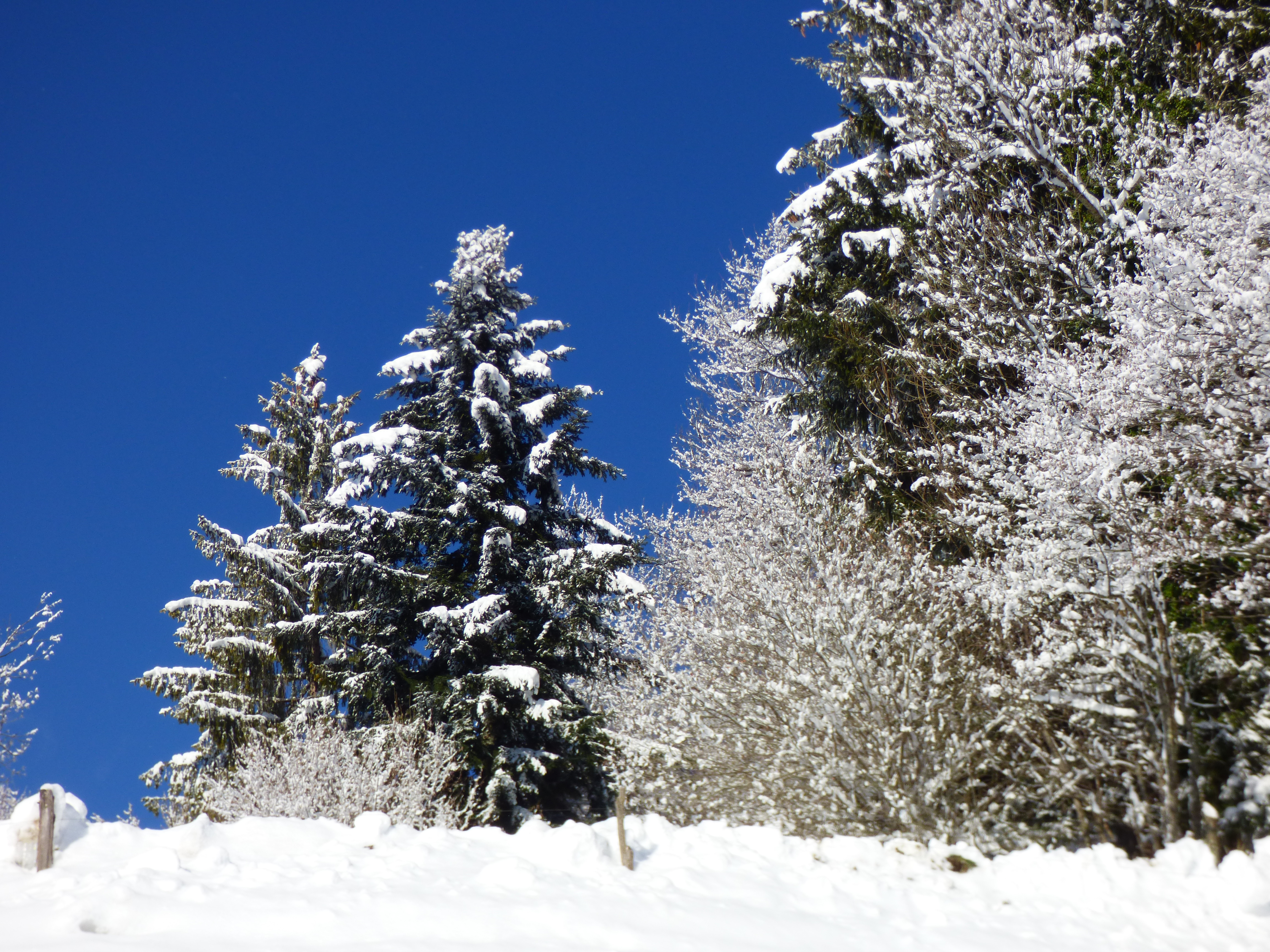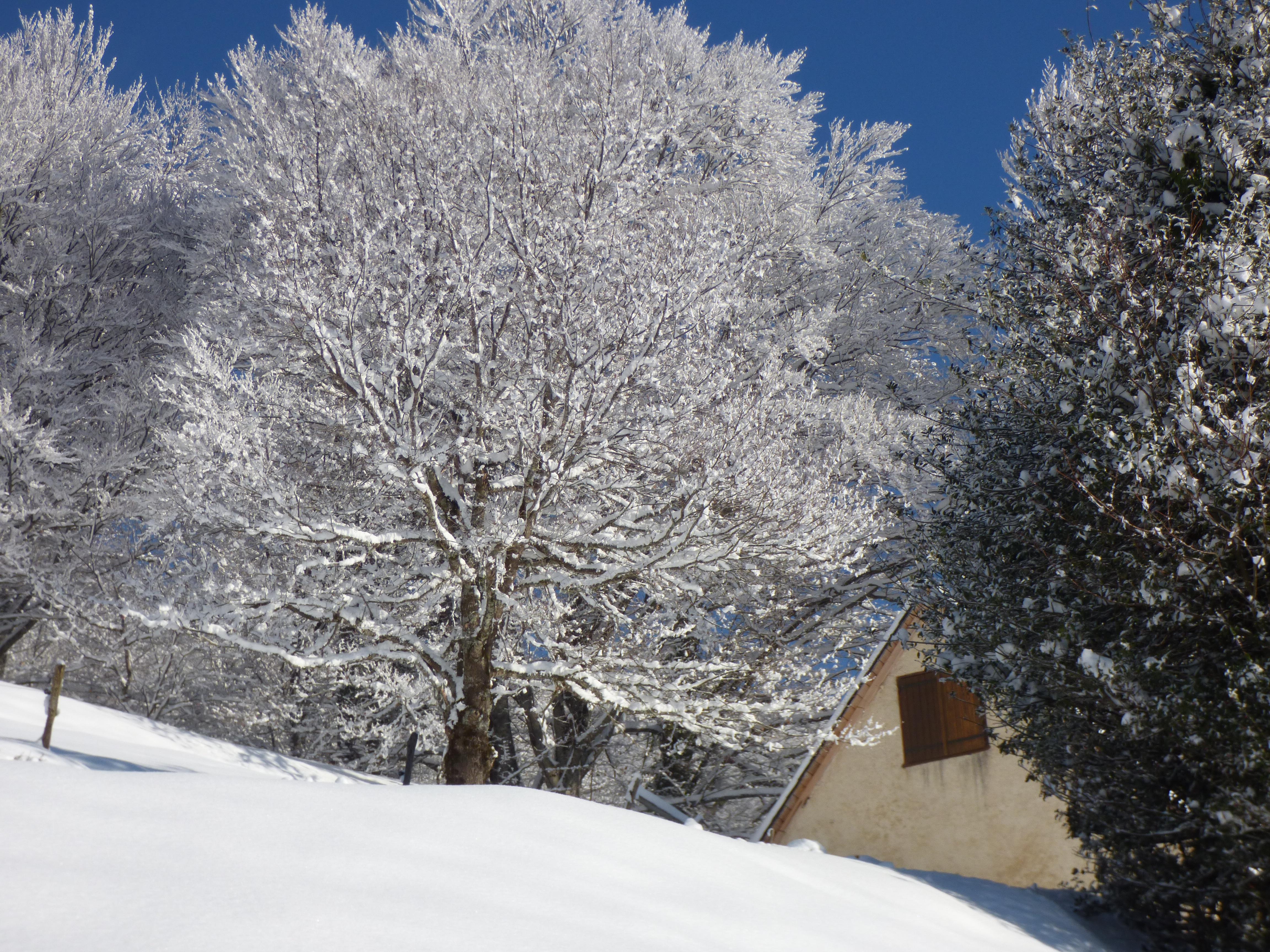 Enfin un hiver marqué, cela faisait longtemps! Nous nous réjouissons des belles images que la saison nous offre, des bienfaits de la neige pour les sols, pour les sources. Bien sûr les mois de froidure ne rendent pas la vie facile pour tous ceux qui travaillent en extérieur mais pour ceux sans réelles contraintes comme nous, ce temps de repos marque une pause hors du temps : alimenter le feu, s’occuper de nos nombreux chats, marcher dans la neige appareil photo en main, lire, cuisiner… aller chercher le pain à pied et bientôt faire découvrir ces beaux paysages à nos hôtes, voilà les plaisirs du quotidien. Voici donc quelques images de ces jours d’hiver sous un soleil glacial.