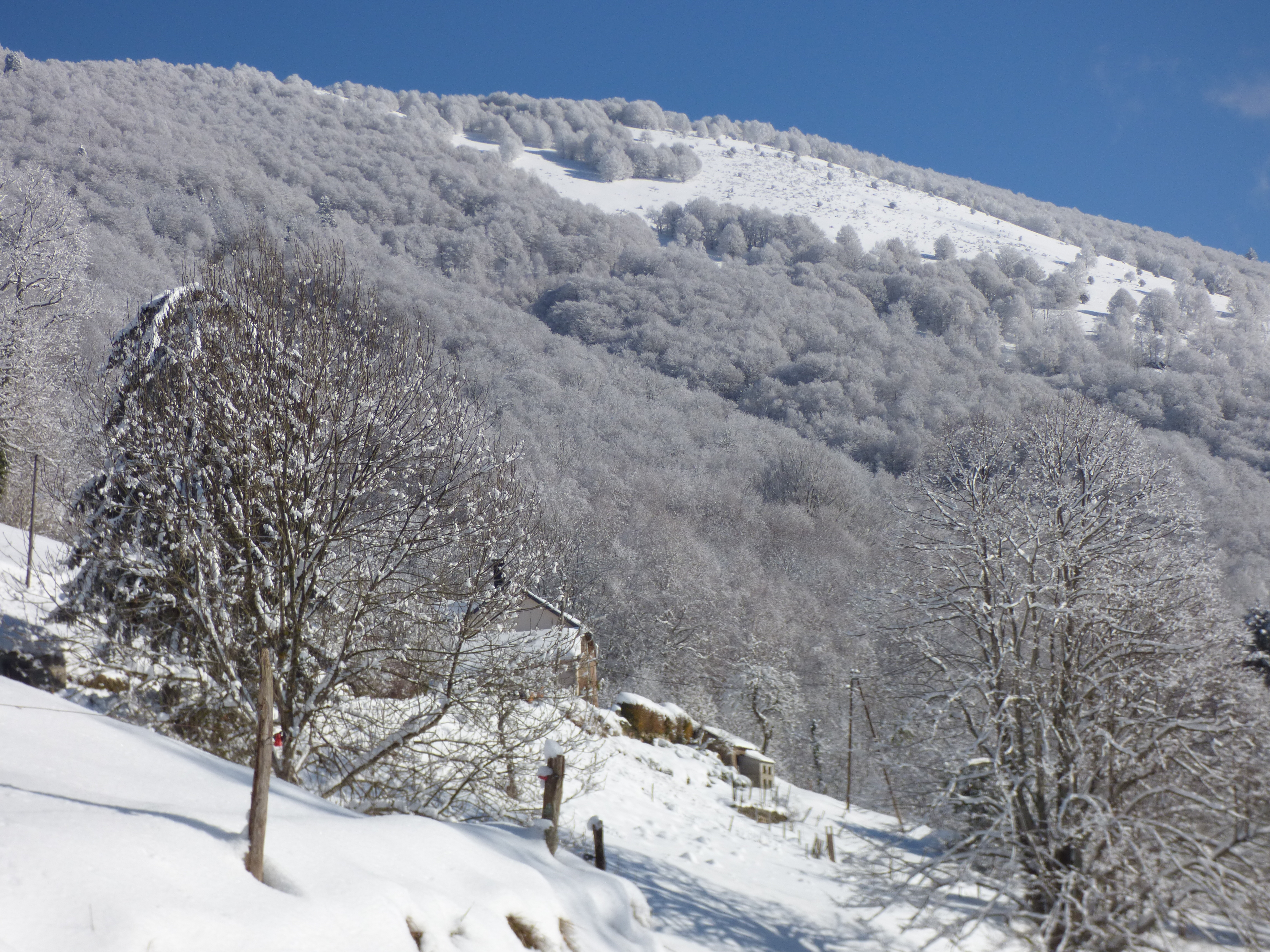De la vue sur le massif de Bassiès où nous aimons tant aller à la belle saison aux petits chemins qui s’enfoncent sous les noisetiers tout à son charme sous le froid soleil de début janvier.