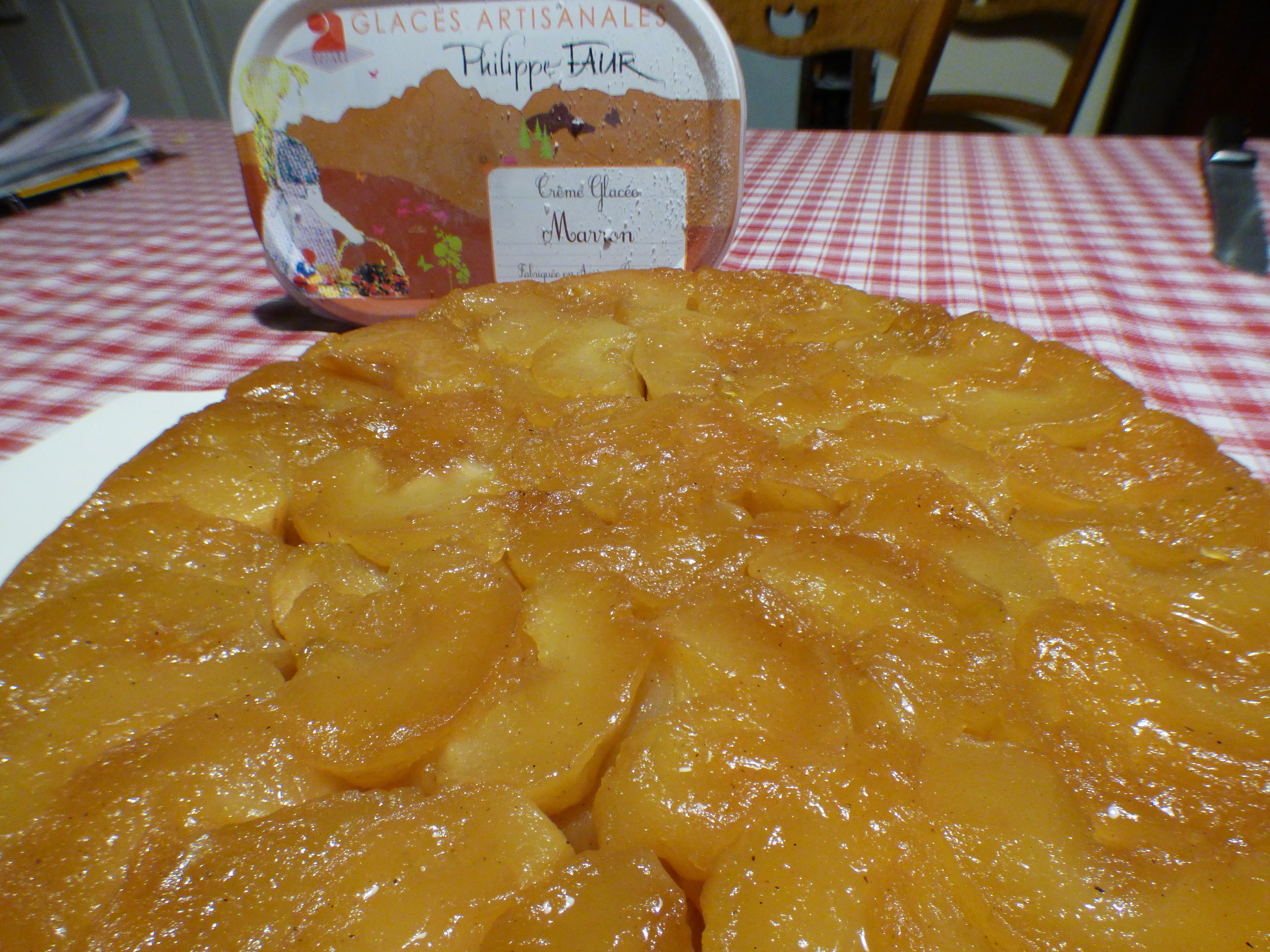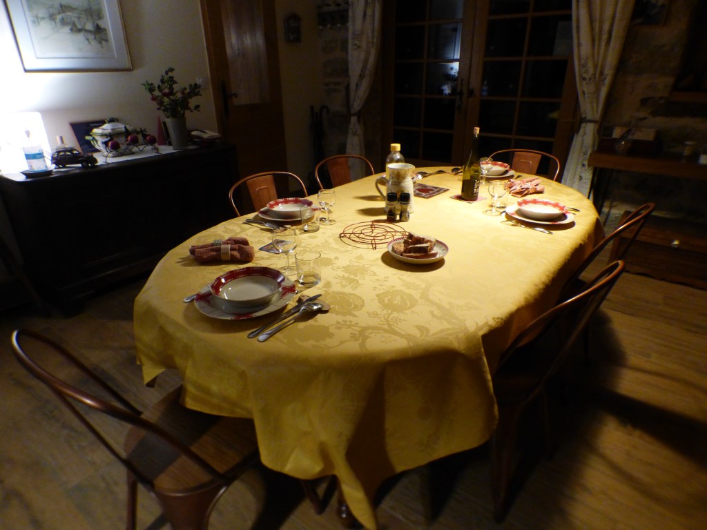 Puis vient l’heure du souper. Vendredi soir c’était tourrin (la soupe à base d’ail spécialité locale) puis lentilles/filet mignon, poires au sirop accompagnées de leurs madeleines maison bien sûr. Ce samedi ce seront encore des plats d’hiver : les légumes du jardin réunis dans une grande soupe, les souris d’agneau de nos bouchers Philippe et Delphine à Massat, puis la tarte tatin accompagnée des glaces de Philippe Faur notre excellent glacier ariégeois.
