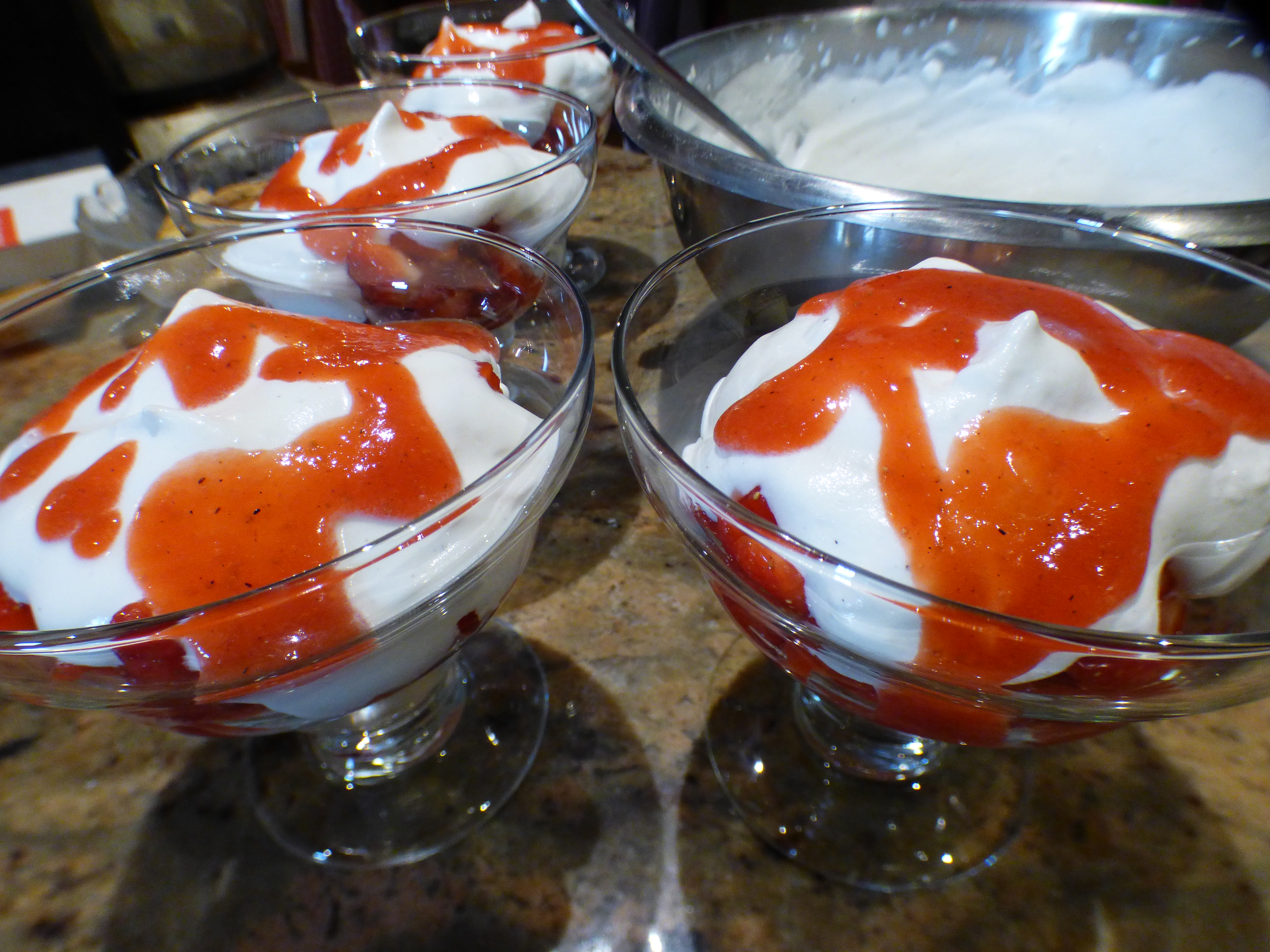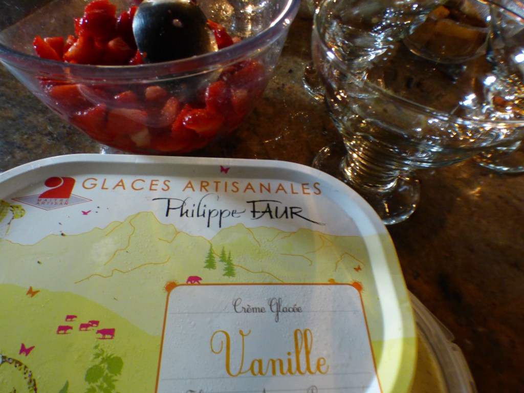 Et enfin coupes de fraises à la chantilly, classique me direz vous, c’est vrai. Mais c’est bon, surtout si l’on trouve dans la coupe une boule de glace vanille de Philippe Faur notre glacier préféré!
