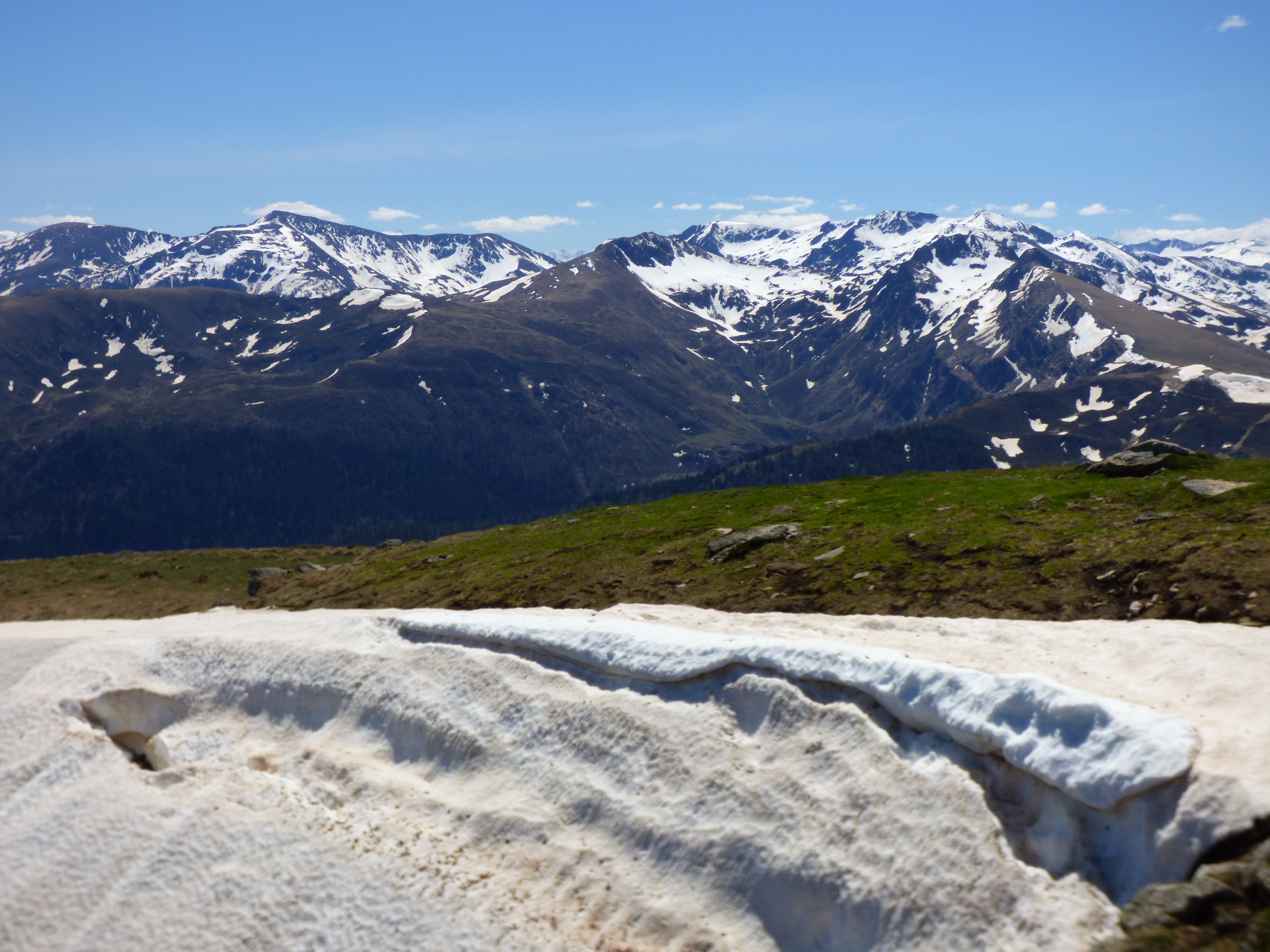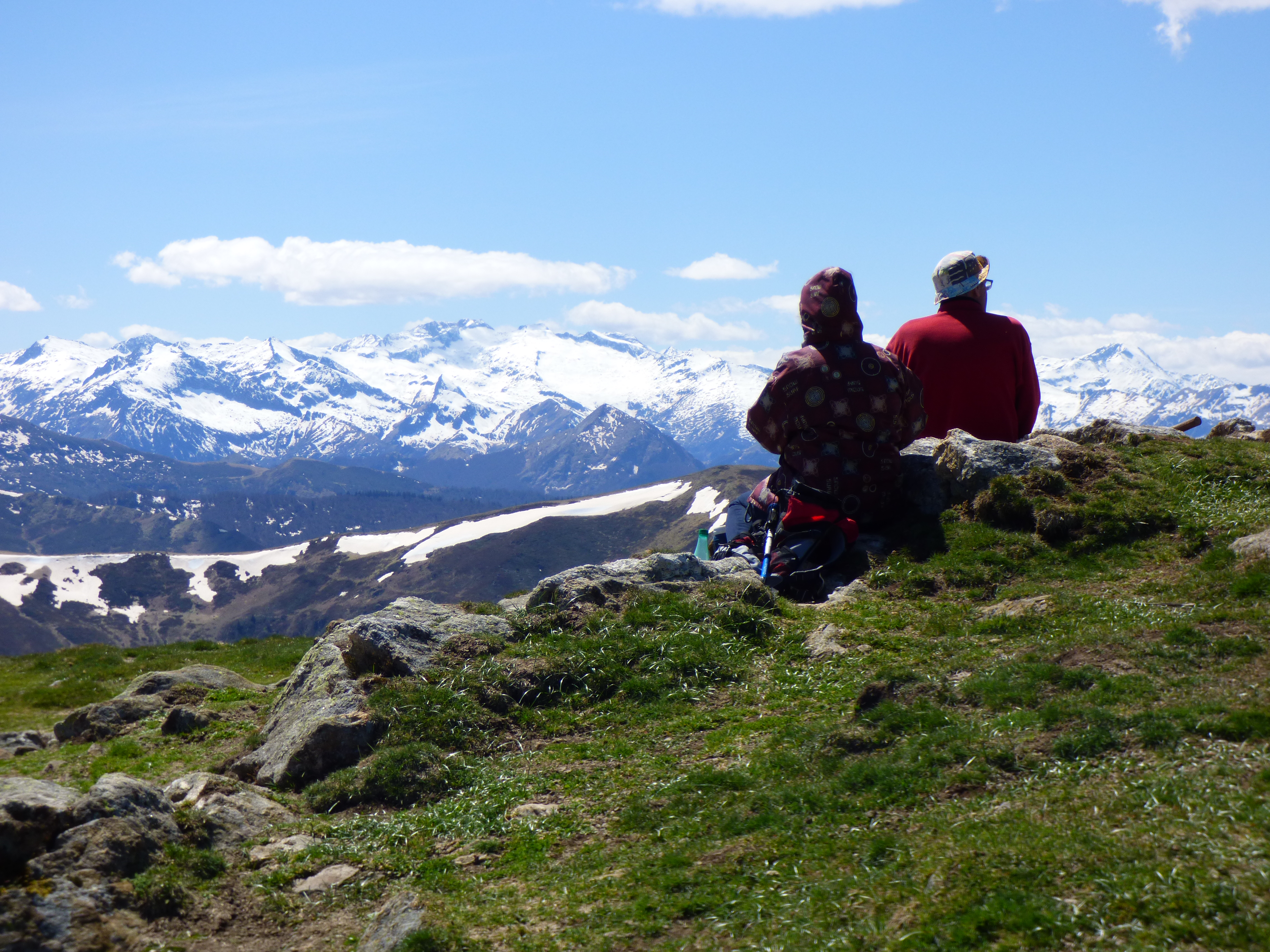 Le retour se fera par le même chemin avec un petit crochet au Pech de Therme. Jolie vue depuis là! face à nous Estibat, la Journalade …. tous ces pics que nous aimons, mais aussi le pic de Razel, Carmil juste derrière fait tant de fois depuis le Péré.