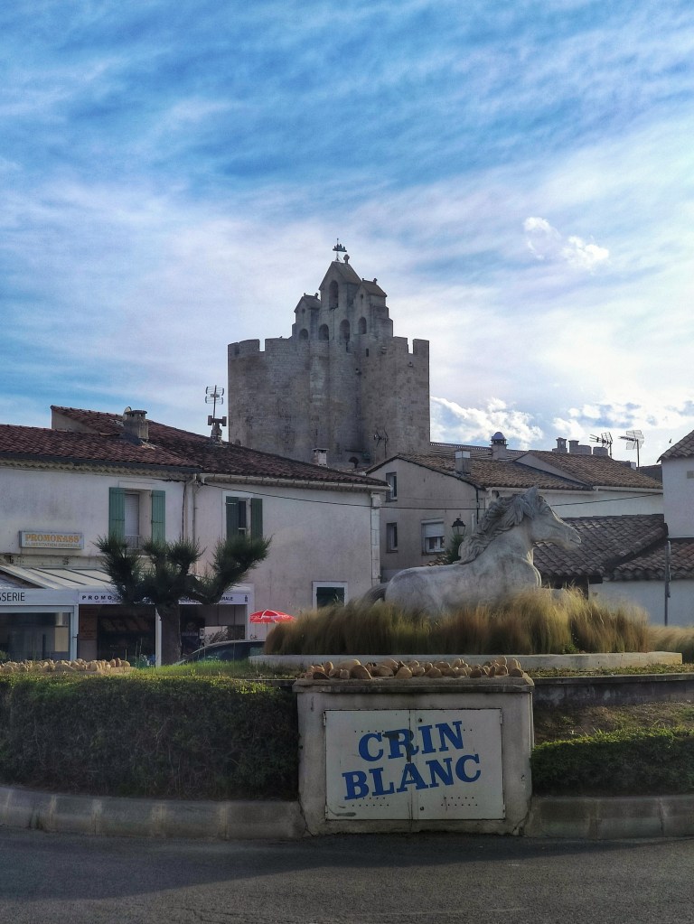 Chaque année nous partageons mère et fille quelques jours de vacances avant que la saison d’été aux chambres et table d’hôtes du Péré ne commence. Nous aimons bien cette parenthèse un peu hors du temps où nous allons de découverte en découverte au gré de nos envies. Cette année le choix s’est porté sur la Camargue. La Camargue pour moi ce sont avant tout les chevaux. Je me souviens encore du tout premier film vu, projeté à l’école de notre petit village. Il relatait l’histoire de Crin Blanc un jeune poulain sauvage convoité par des voleurs de chevaux… La statue de Crin Blanc est aujourd’hui sur une des places des Saintes Maries de la Mer et je suis redevenue petite fille en la regardant.