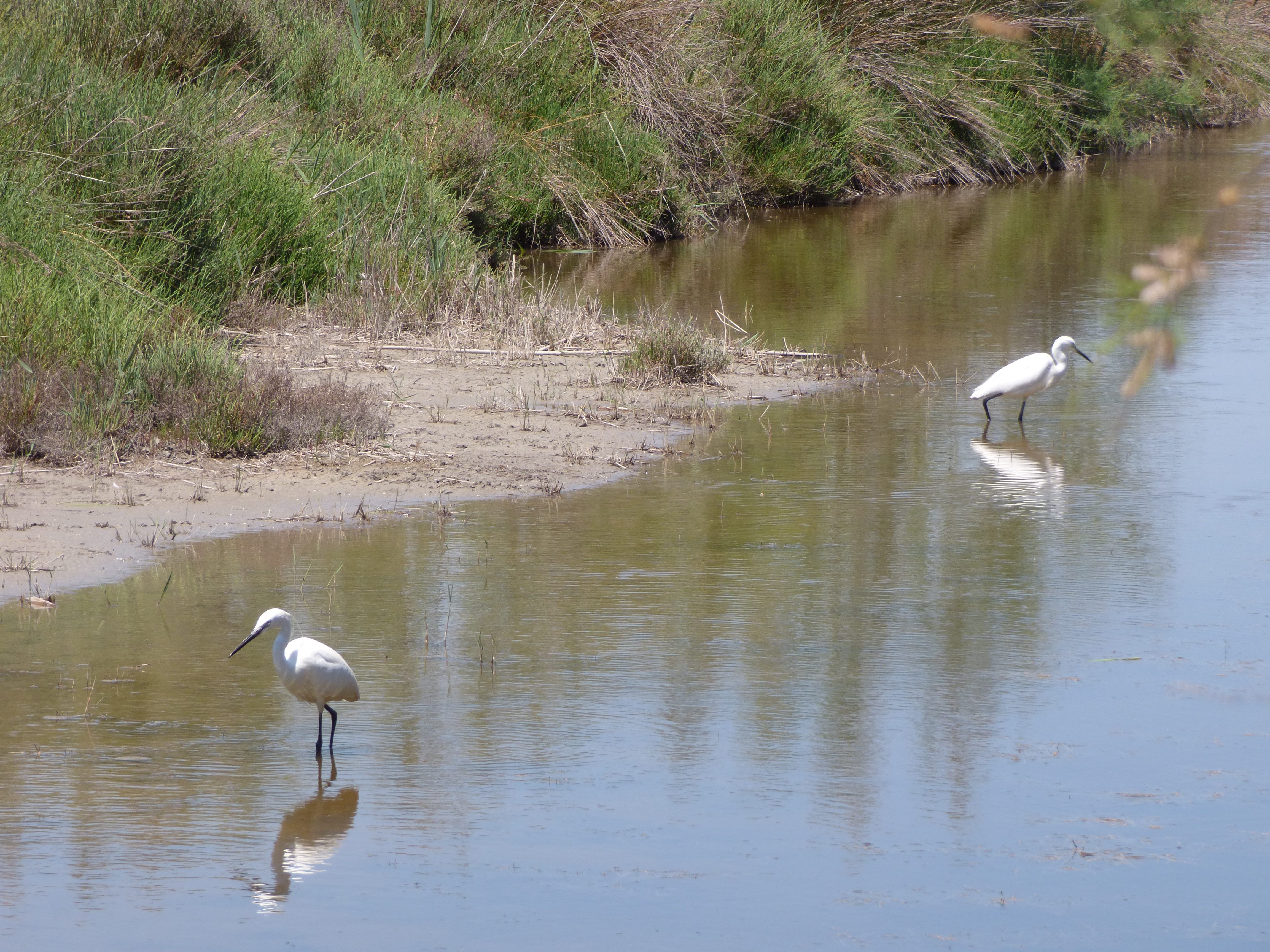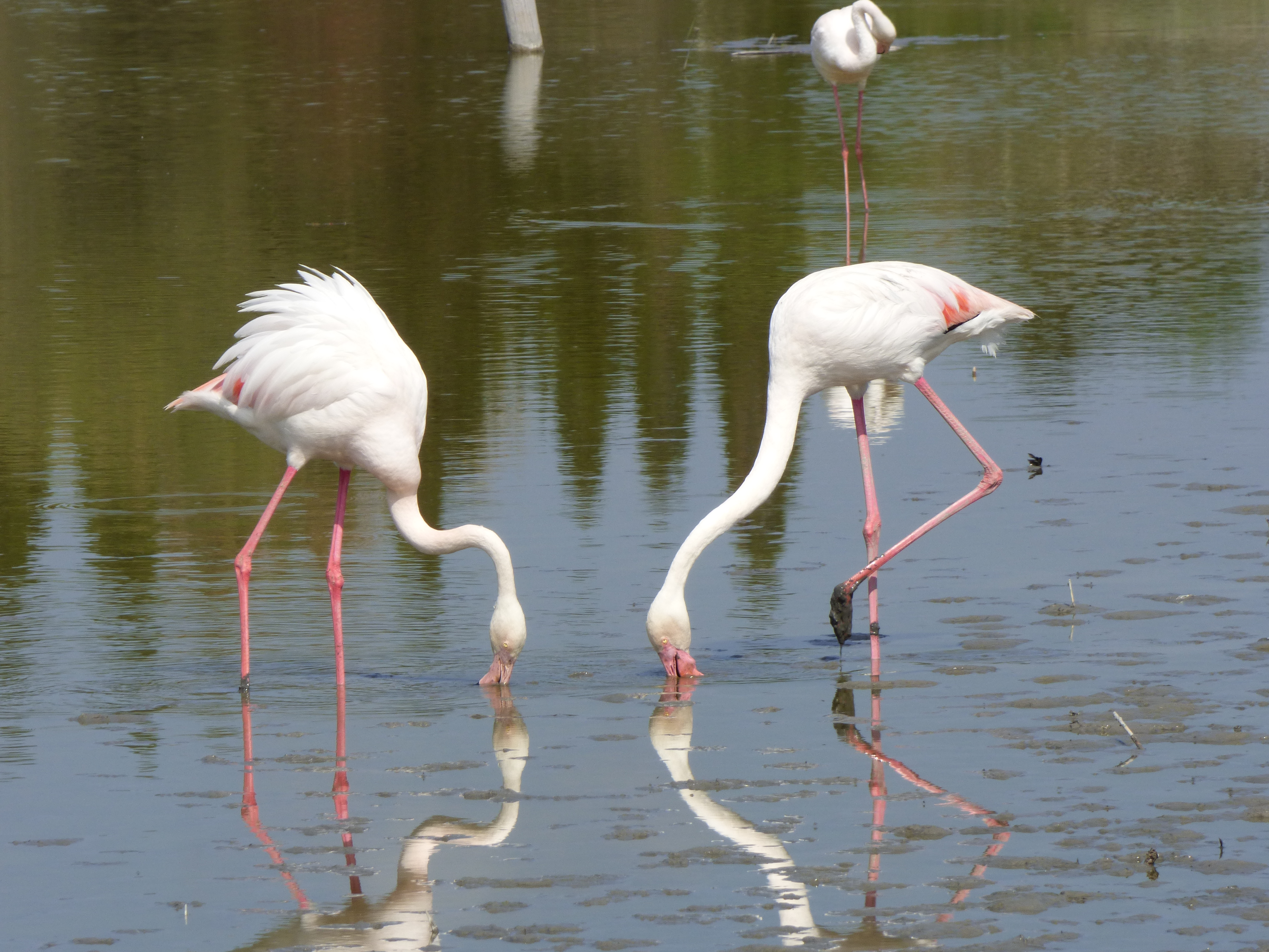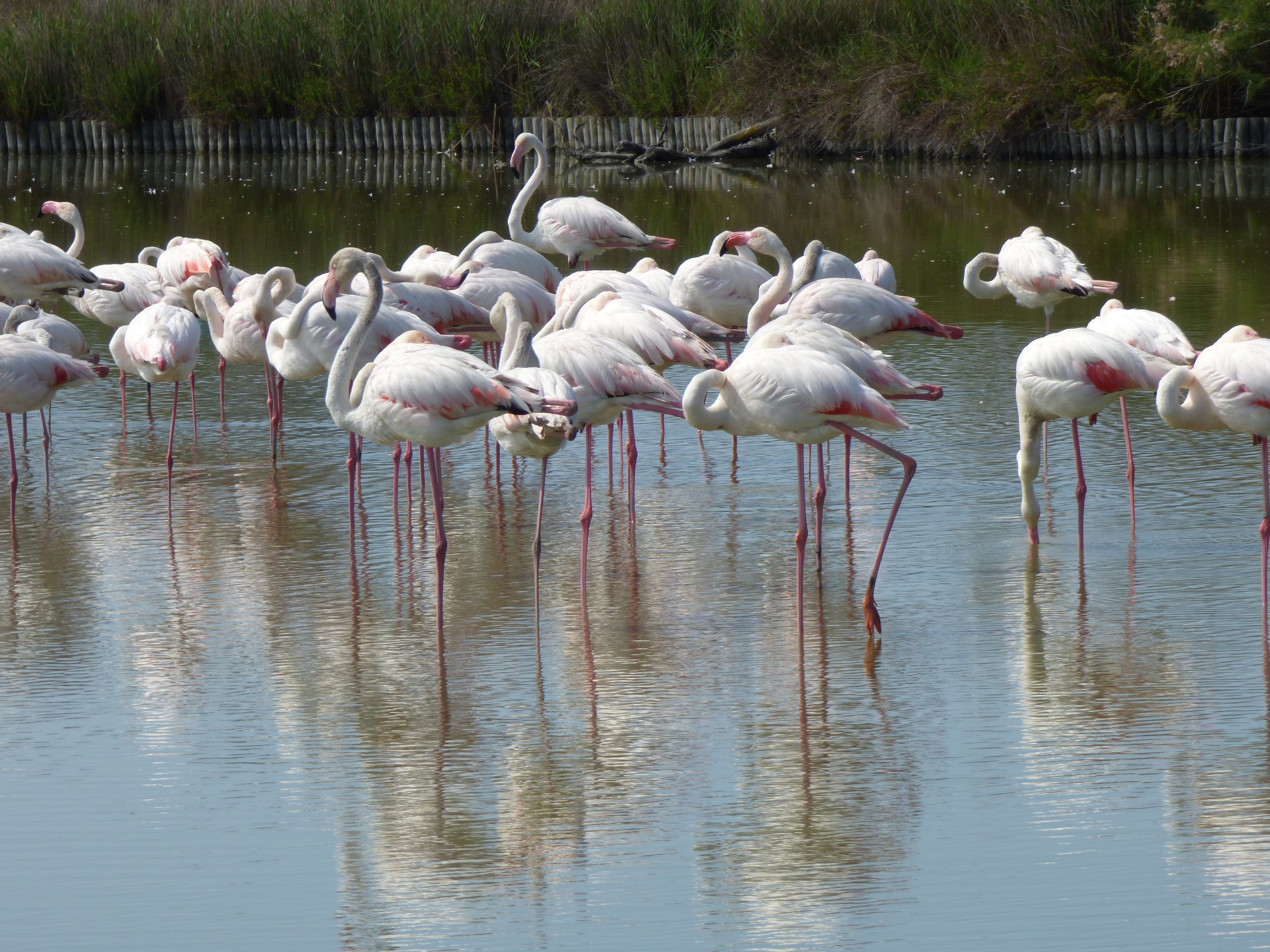 Si les flamants roses par leur nombre et leur élégance surtout attirent le regard, nous repérons très vite bien d’autres espèces : hérons cendrés, grandes aigrettes, échasses blanches, grands cormorans et tant et tant d’autres …