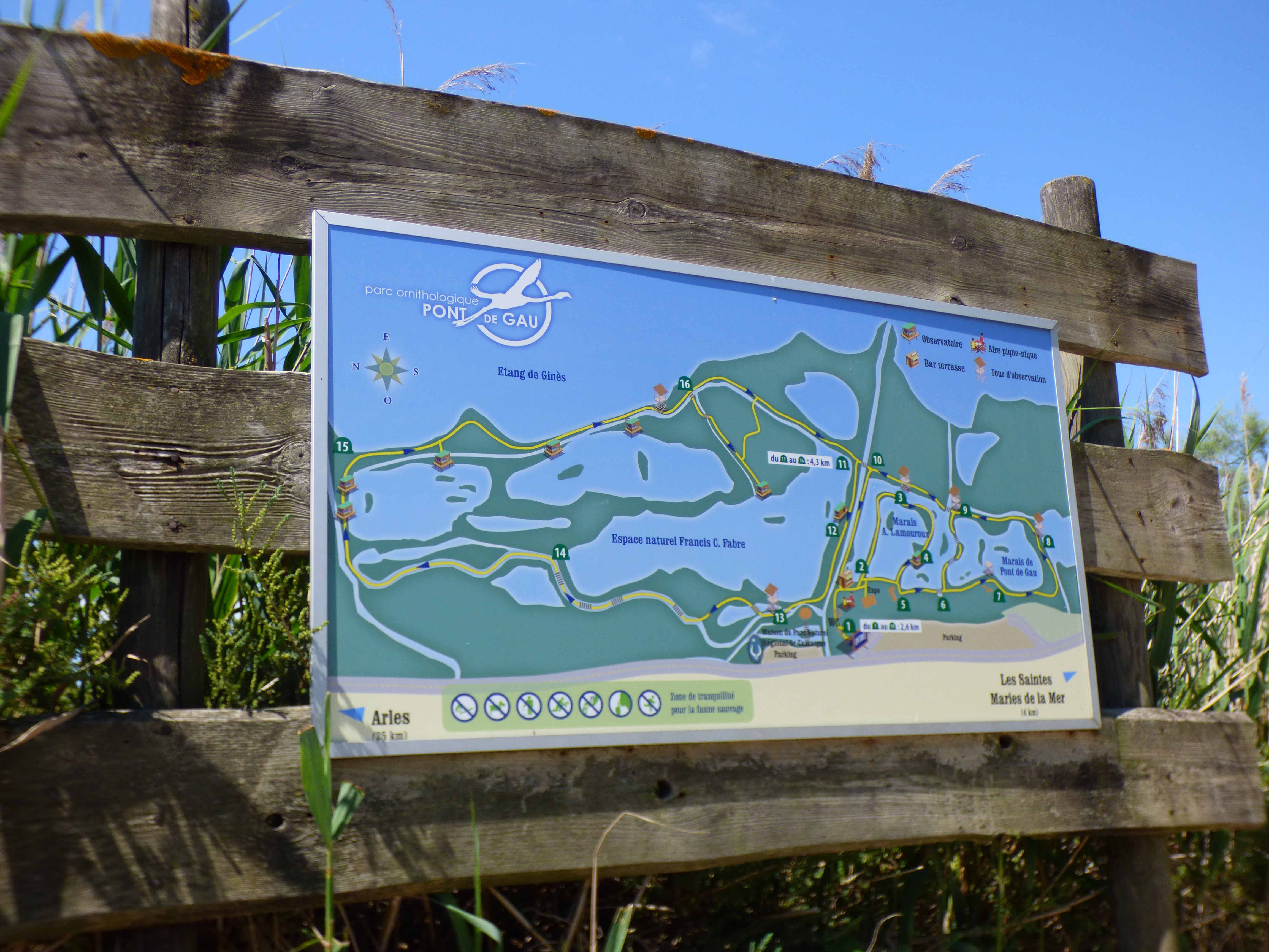 7 kilomètres de sentiers nous aurons permis de découvrir les espèces d’oiseaux vivant en Camargue au Parc Ornithologique du Pont de Gau. Une visite surprenante qui valait le détour avant bien d’autres découvertes qui ont jalonné une riche semaine de vacances.