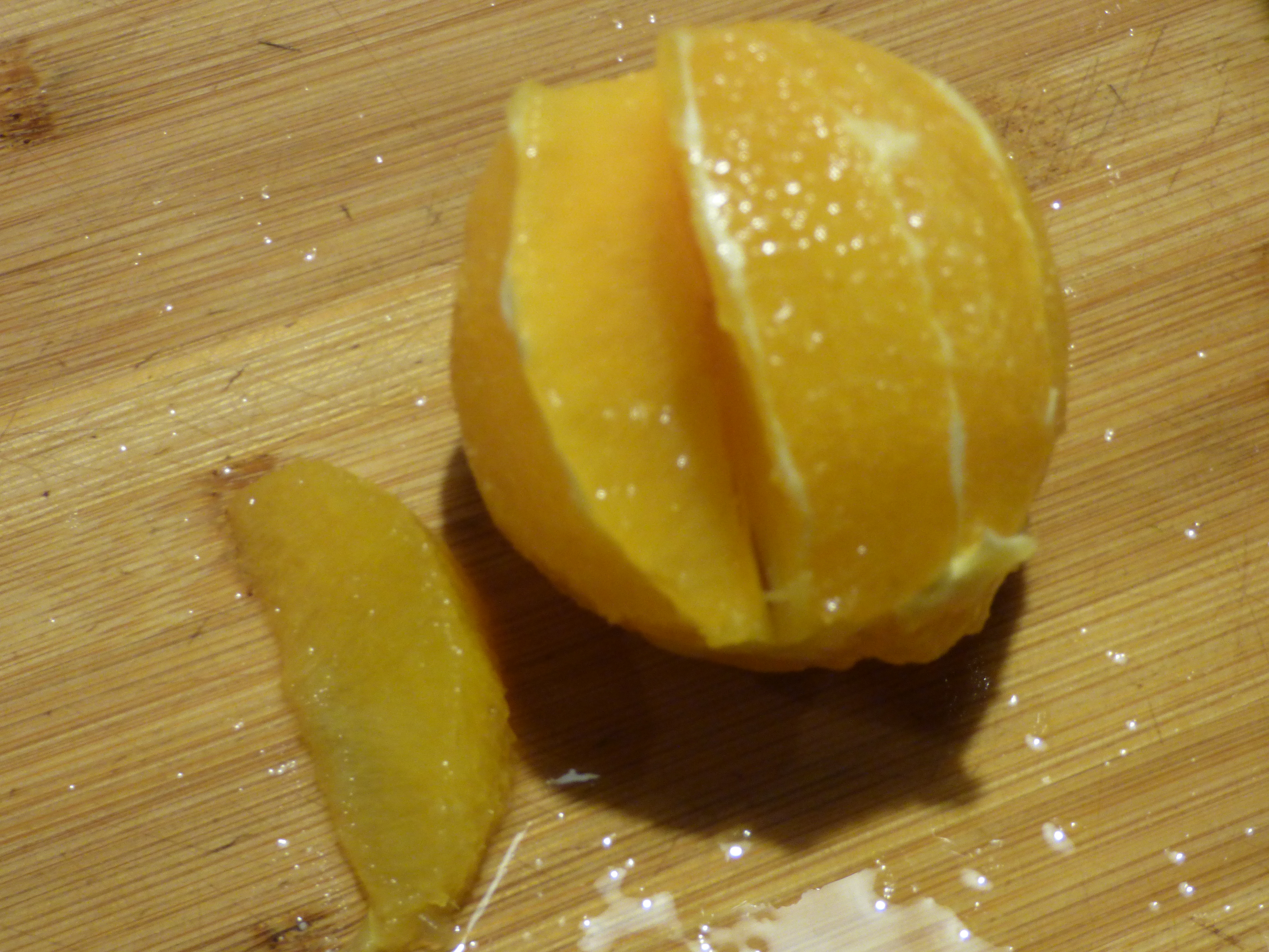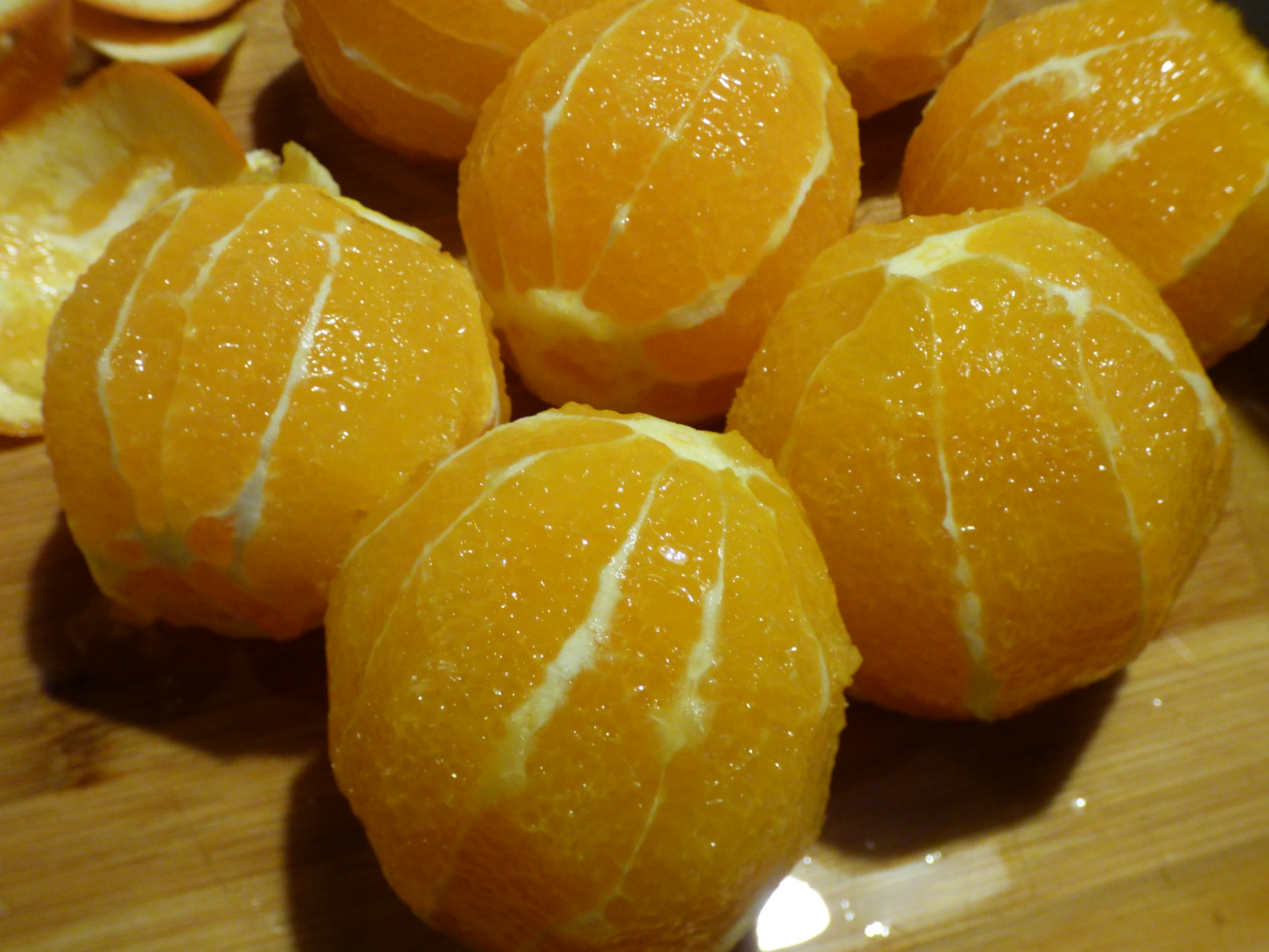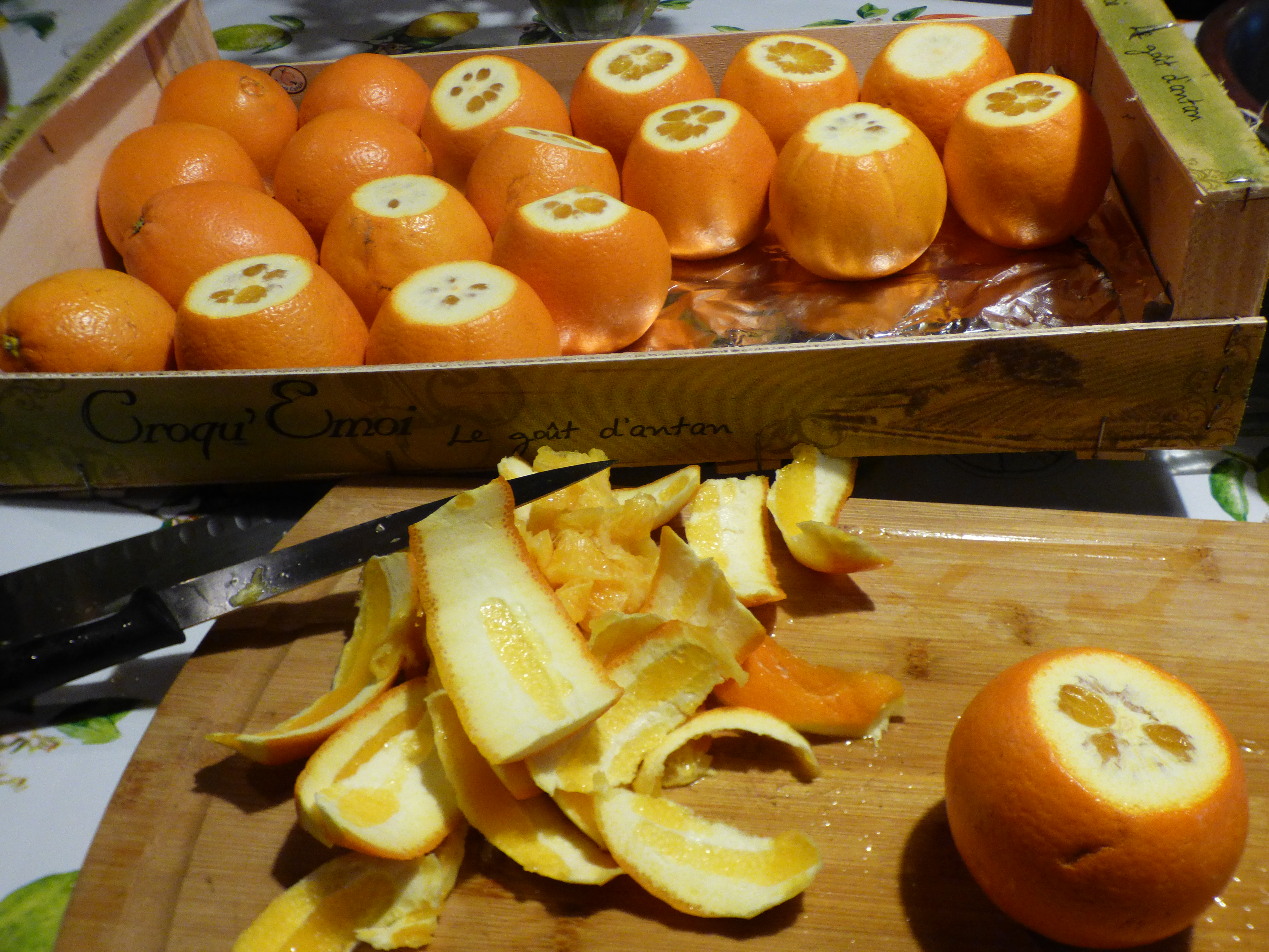 La première étape consiste à choisir de belles oranges bio de préférence. Quatre kilos on été achetés puis les agrumes ont été pelés à vif avant de lever les segments. Le travail est un peu long et fastidieux il faut bien le dire.