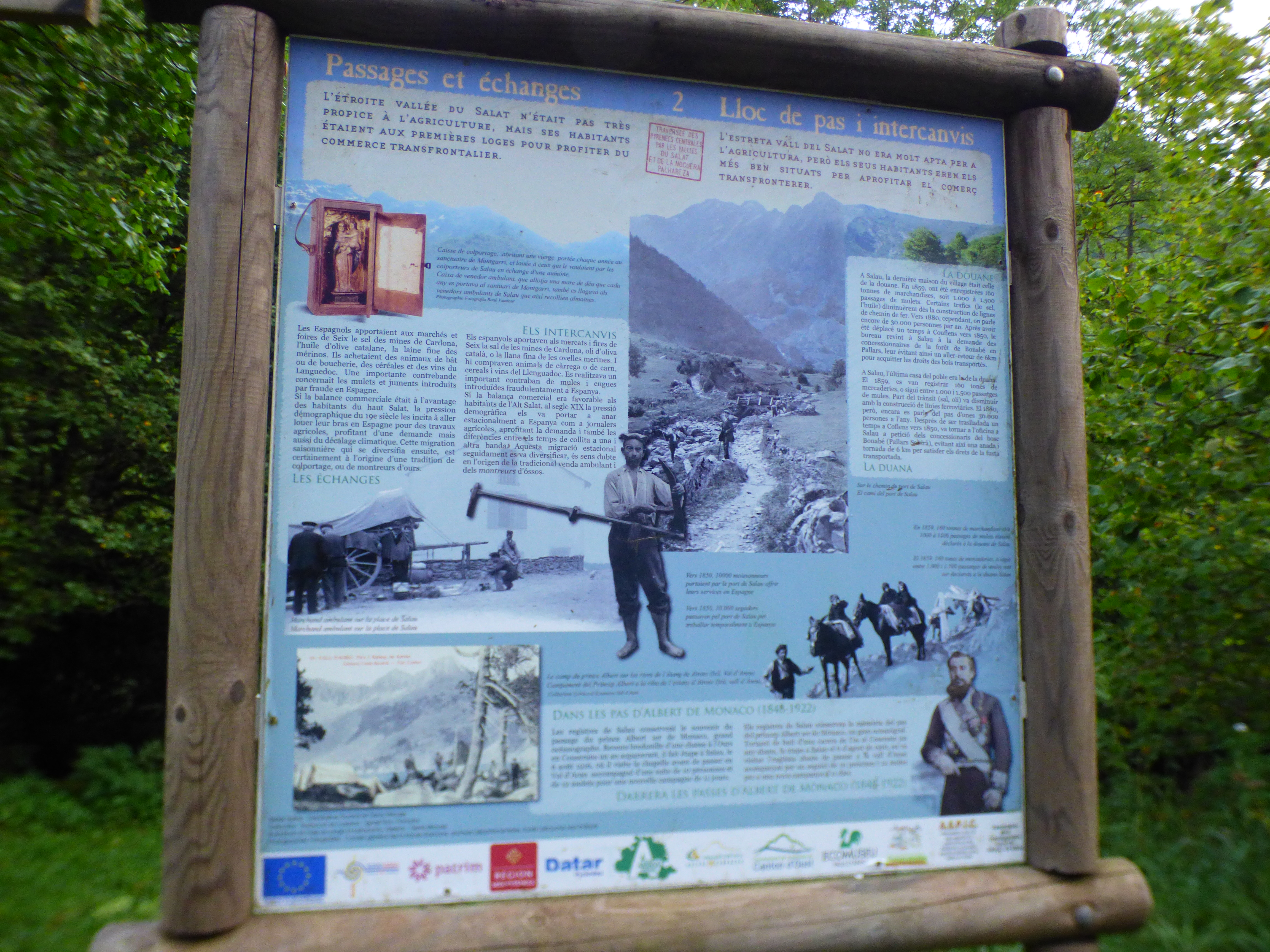 Le lendemain matin le départ se fit tôt de Salau chacun portant sa part de fromage dans son sac. Fromage bien sûr destiné au partage. Tout le long de la montée sur un beau sentier bien tracé des panneaux donnent bien des informations utiles sur l’histoire des lieux, les mouvements de population et aussi l’activité de cette zone de montagne.