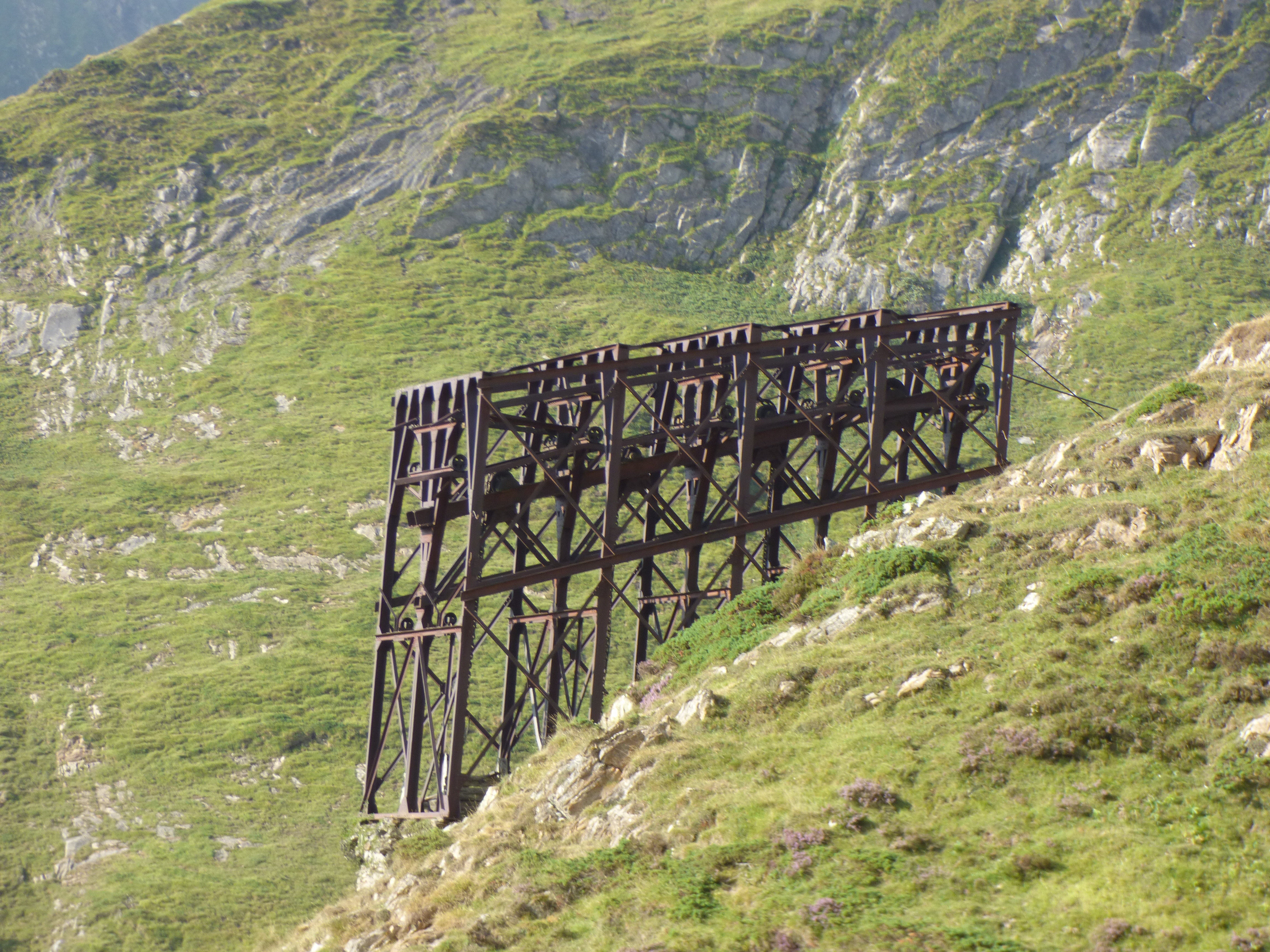 Au fur et à mesure de la montée nous nous rendons aussi très vite compte que la montagne a fourmillé d’activités. En effet en approchant du port on remarque des pylônes métalliques, des câbles… qui servirent au transport de bois espagnol destiné à la papèterie. Par câble aérien le bois arrivait à Salau Les vestiges permettent d’imaginer facilement l’activité qui régna sur ces lieux. Le transporteur aérien se composait de trois câbles en acier supportés par quatre vingt onze pylônes. A Bonabé un village vit le jour pour une centaine d’ouvriers majoritairement espagnols. Reste au port de Salau une bâtisse dont les vestiges ont été cristallisés et toutes les informations nécessaires pour appréhender le lieu qui vit le déclin de son activité après la guerre de 1914-1918. La grande râperie de Salau fut alors transférée vers Lédar.